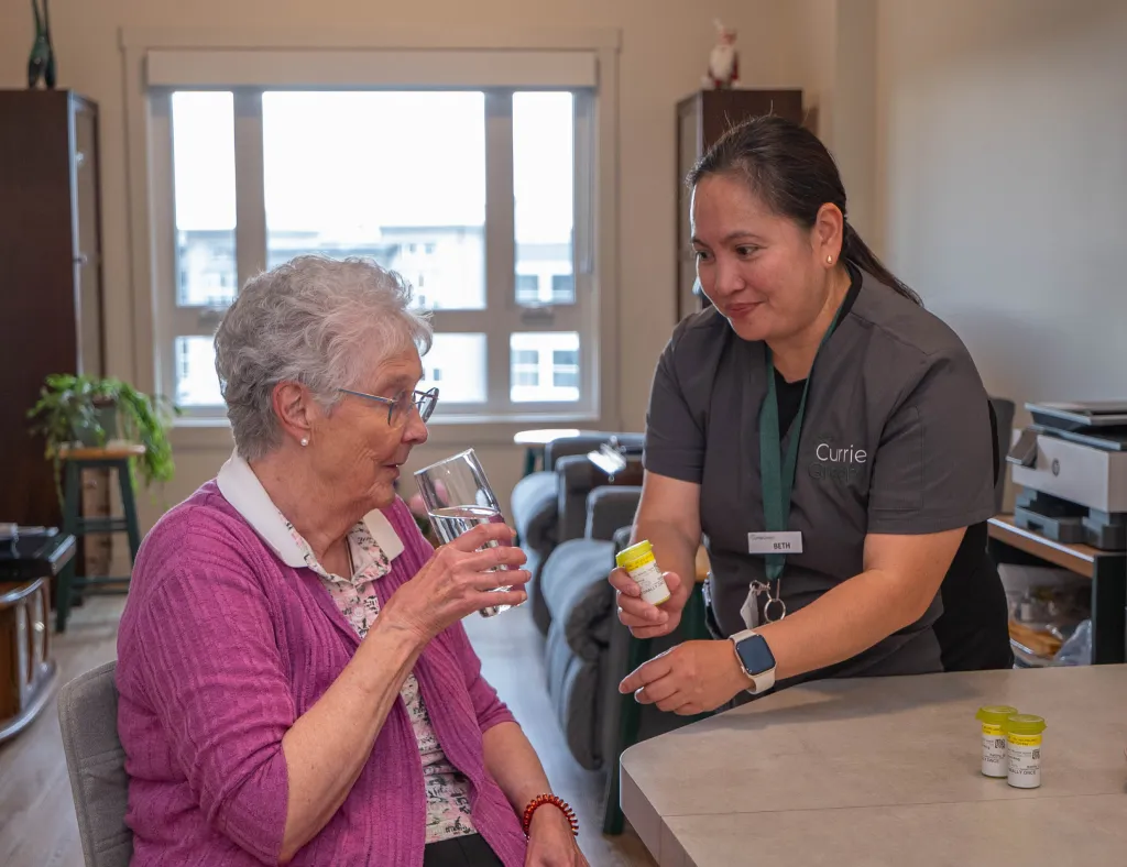 Our compassionate nurses provide gentle, timely reminders to ensure your health routine is maintained seamlessly in our private assisted living community in Calgary.