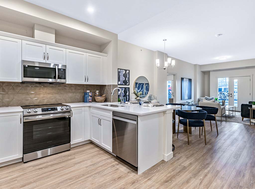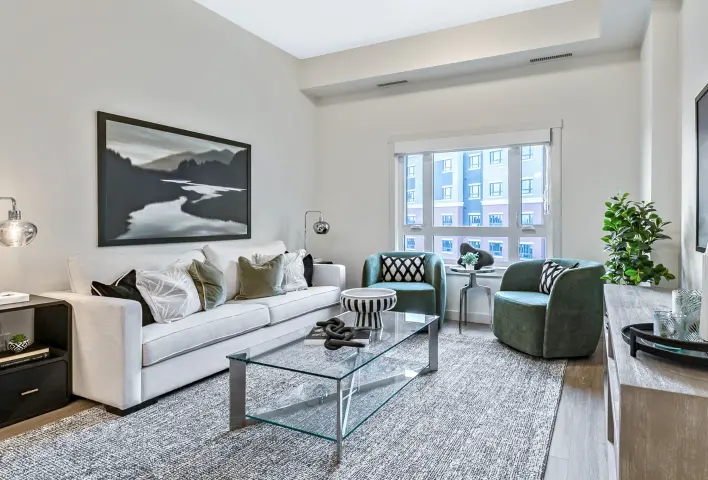 Experience luxurious senior assisted living in Calgary with our elegant one- and two-bedroom suites, designed as a sophisticated backdrop for unforgettable moments. Each spacious suite features full kitchens, accessible showers, emergency call pull cords, and modern fixtures, comfortably accommodating walking aids while allowing you to enjoy maintenance-free living and the freedom to come and go as you please.