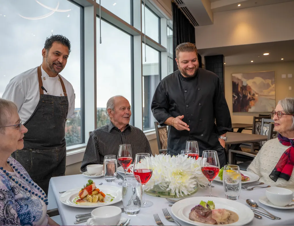 Our flexible meal plans enable residents to select from various options that cater to their individual dietary needs and preferences. Enjoy gourmet creations prepared by our skilled chefs, ensuring every bite supports your health and well-being. With two meals provided daily, residents have the freedom to dine in the beautifully designed communal dining room or within the comfort of their spacious suites.